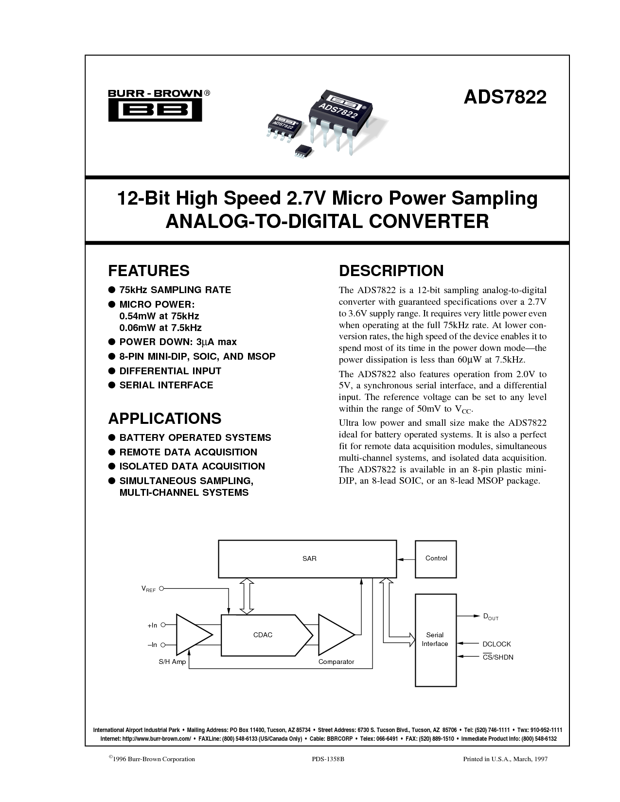 超 低 电源 和 小 尺寸 制造 这 ads7822
