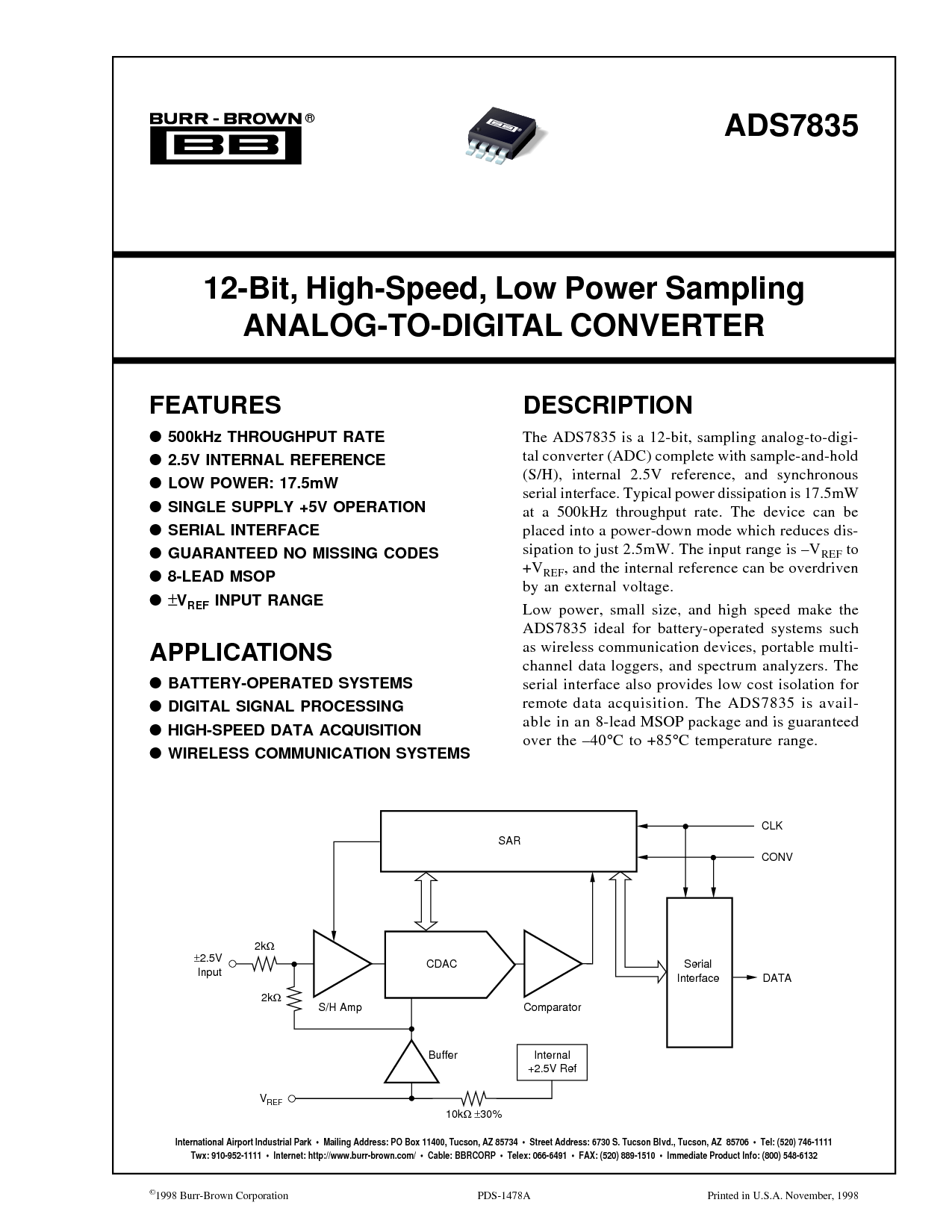 这 ads7835 是 一个 12-有点, 取样 模拟-至-数字-