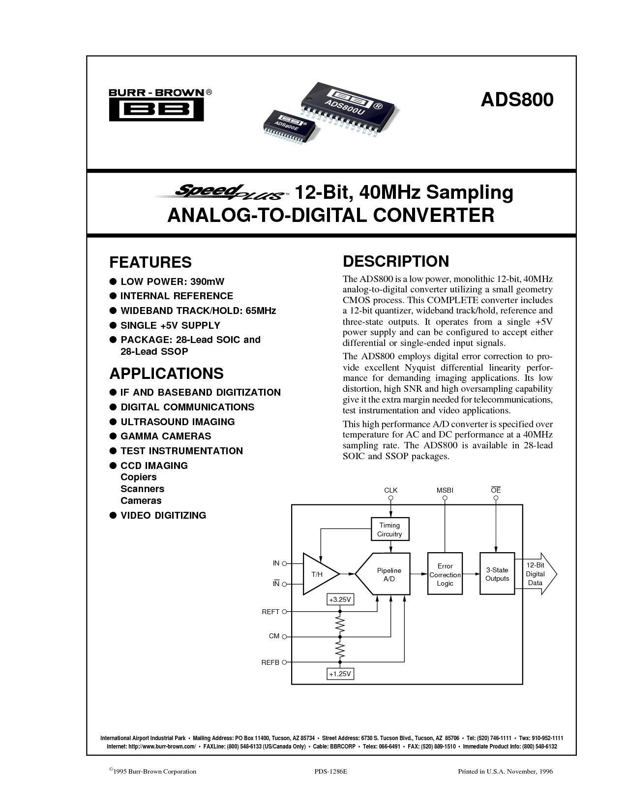 这 ads800 是 一个 低 电源, 单片 12-有点, 40mhz