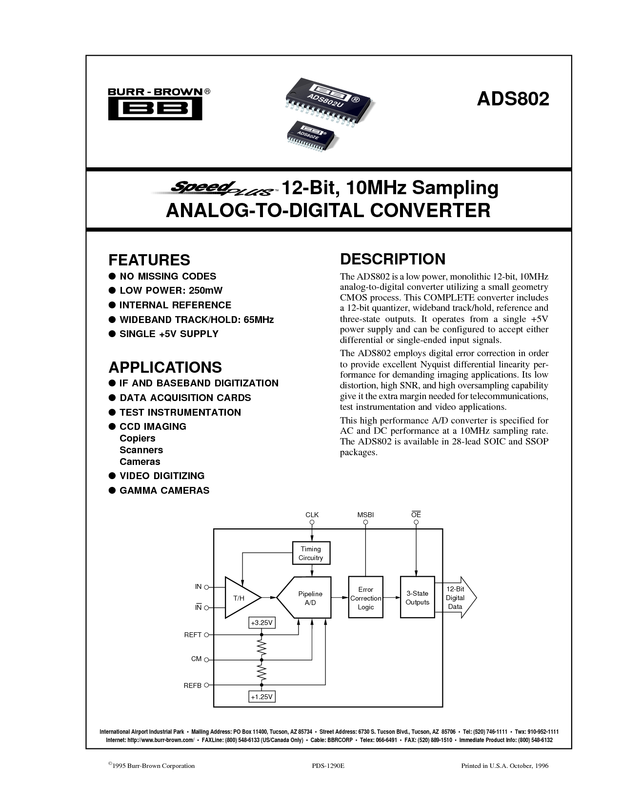 这 ads802 是 一个 低 电源, 单片 12-有点, 10mhz