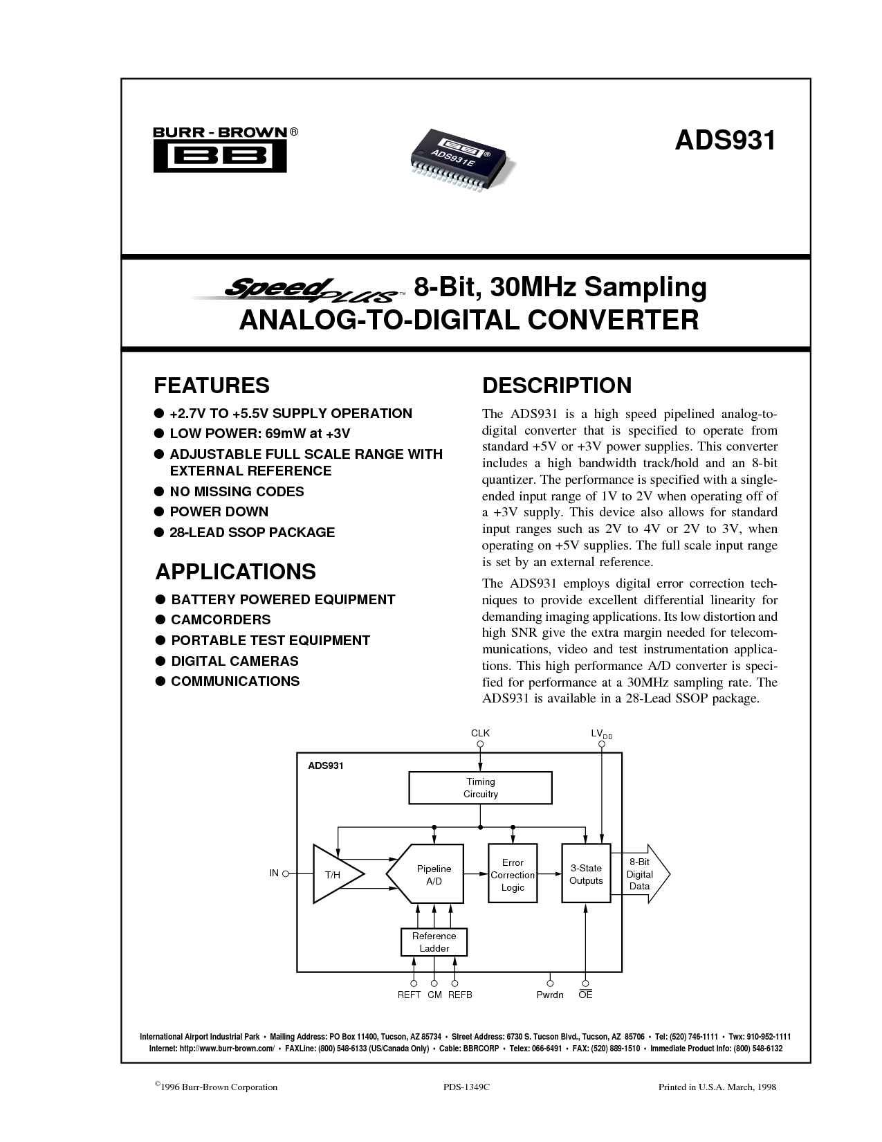 ads931 是 可用 入点 一个 28-铅 ssop 包装.