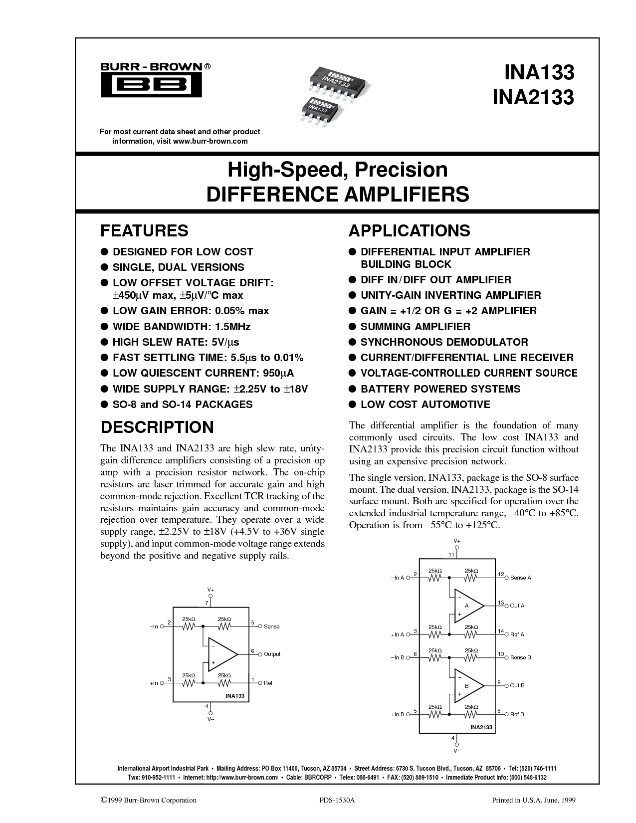 这 ina133 和 ina2133 是 高 回转 费率, 统一-