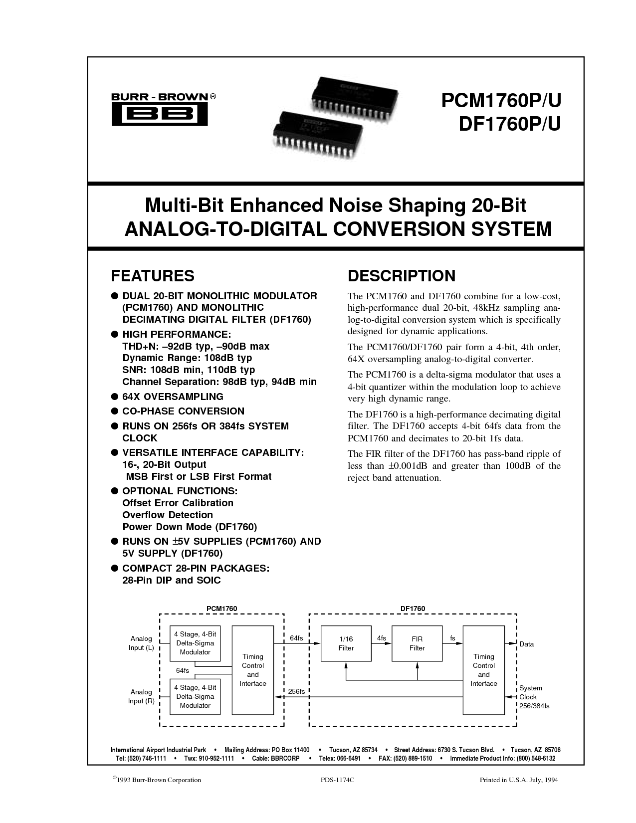 浏览型号PCM1760P/U的Datasheet PDF文件第2页