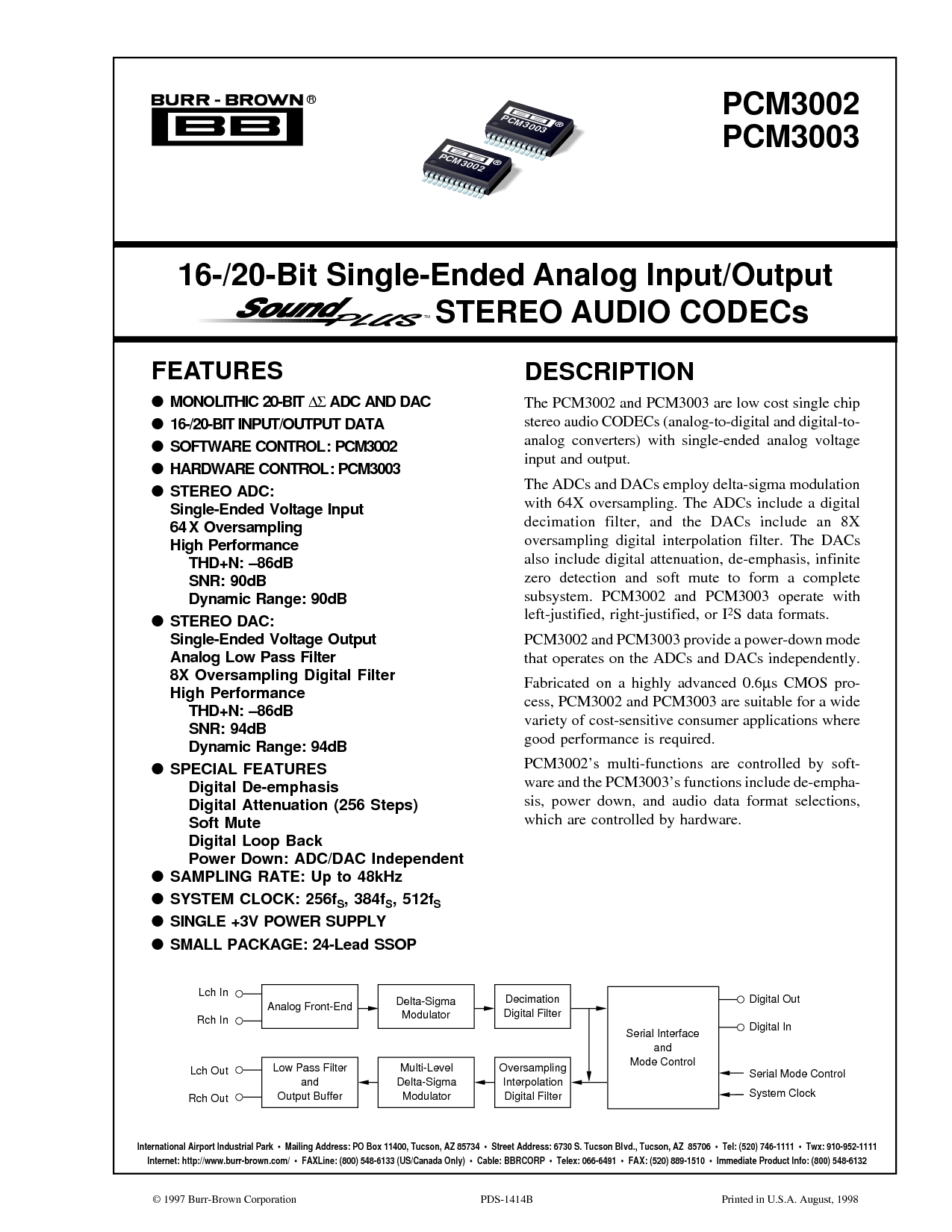 这 pcm3002 和 pcm3003 是 低 成本 单独 芯片