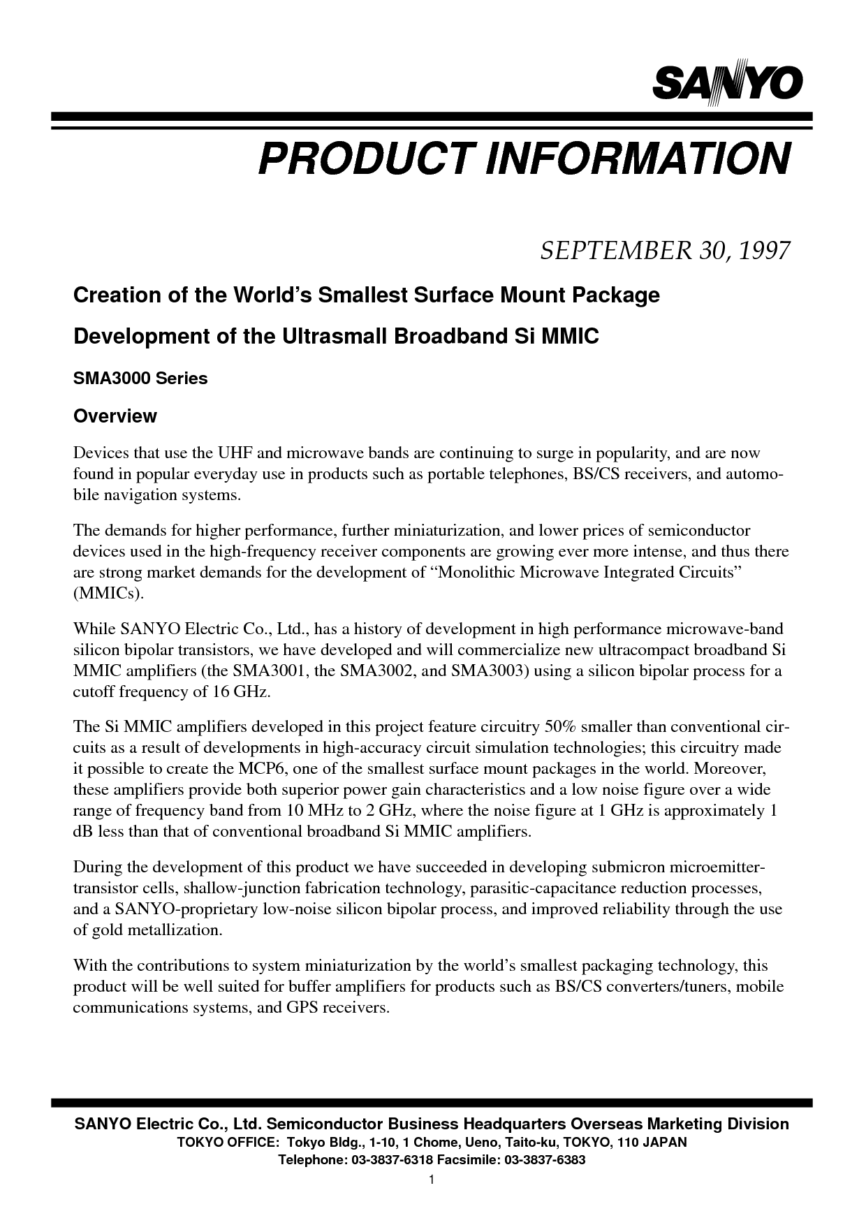 mmic 放大器 (这 sma3001, 这 sma3002, 和 sma3003) 使用 一个 硅 双极性 流程 用于 一个