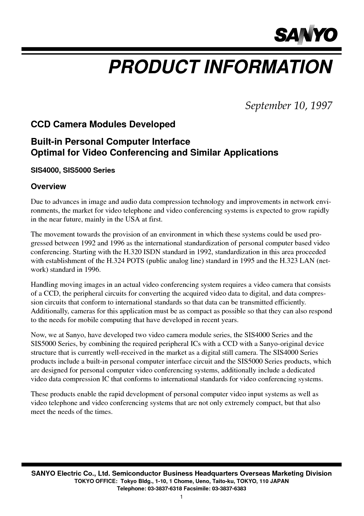 sis5000 系列, 由 组合 这 必填项 外围设备 ics 与 一个 ccd 与 一个 三洋-原件 设备