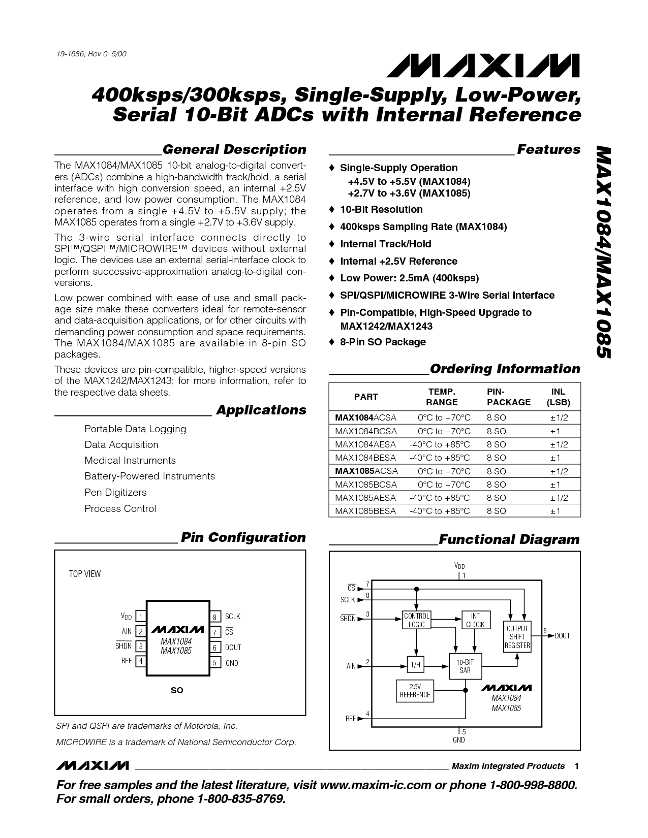 用于 免费 样品 和 这 最新 文学, 参观 www.马克西姆-集成电路.com 或 电话 1-800-998-8800.