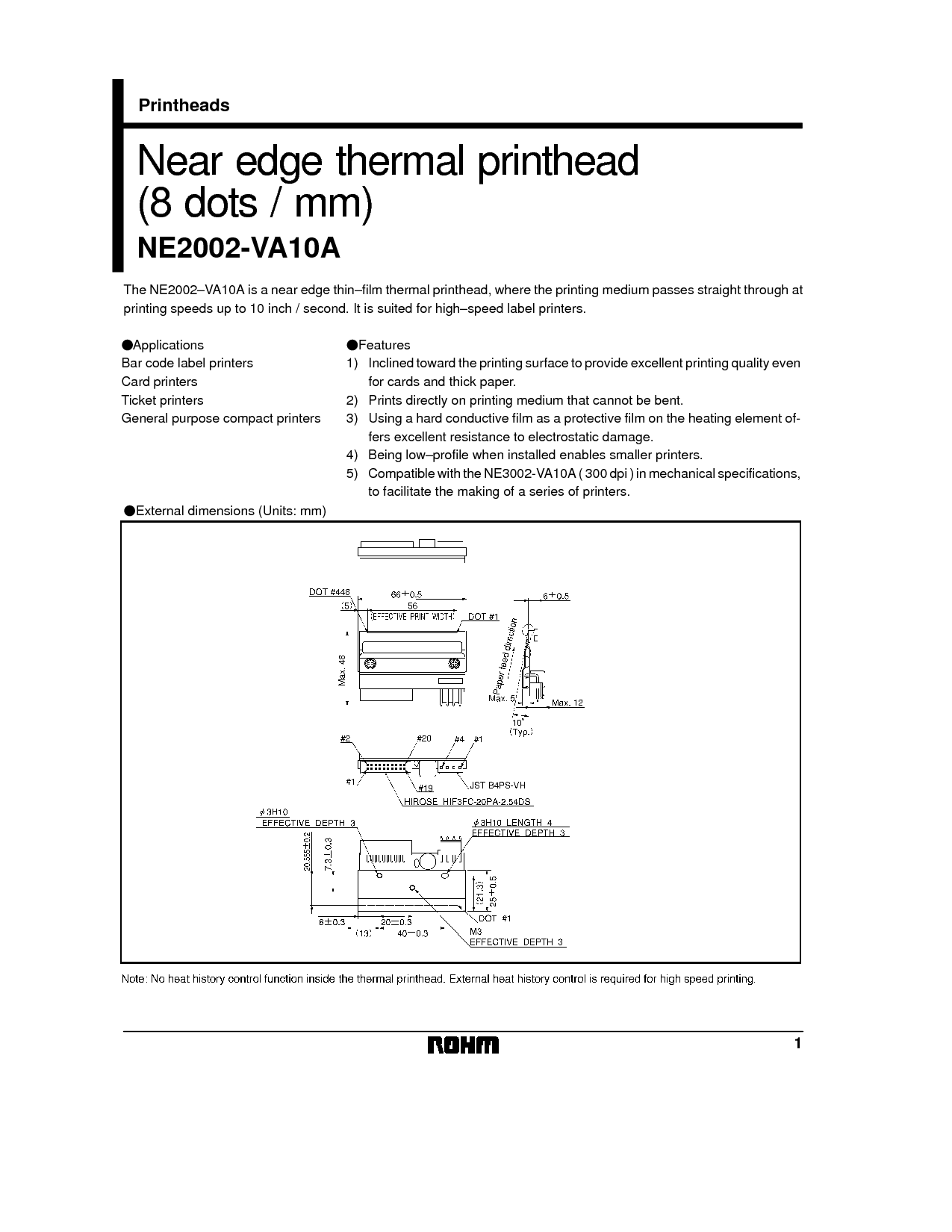这 ne2002–va10a 是 一个 近 边缘 thin–film 热 printhead, 在哪里 这 印刷 中 通行证 直线 通过 在