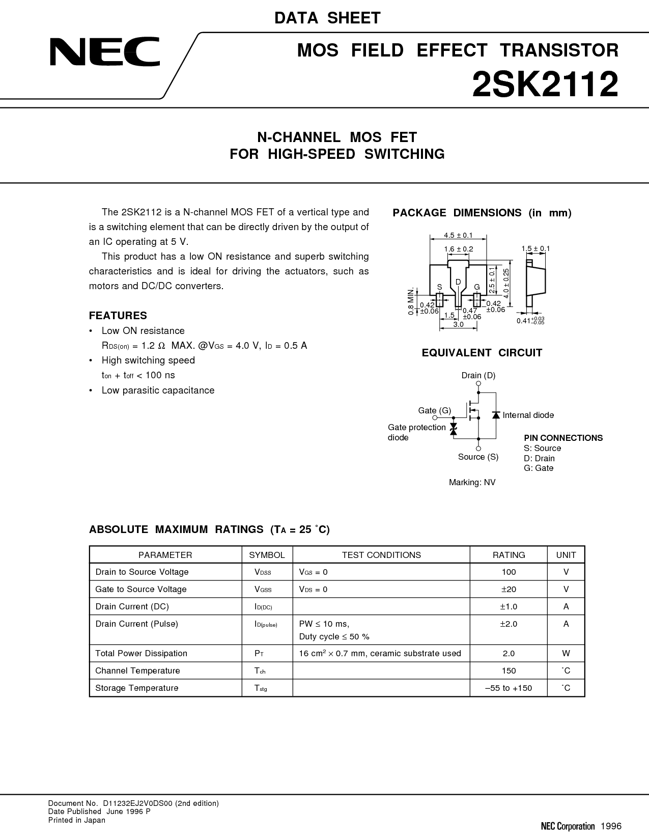 这 2sk2112 是 一个 n通道 mos 场效应晶体管 的 一个 垂直 类型 和