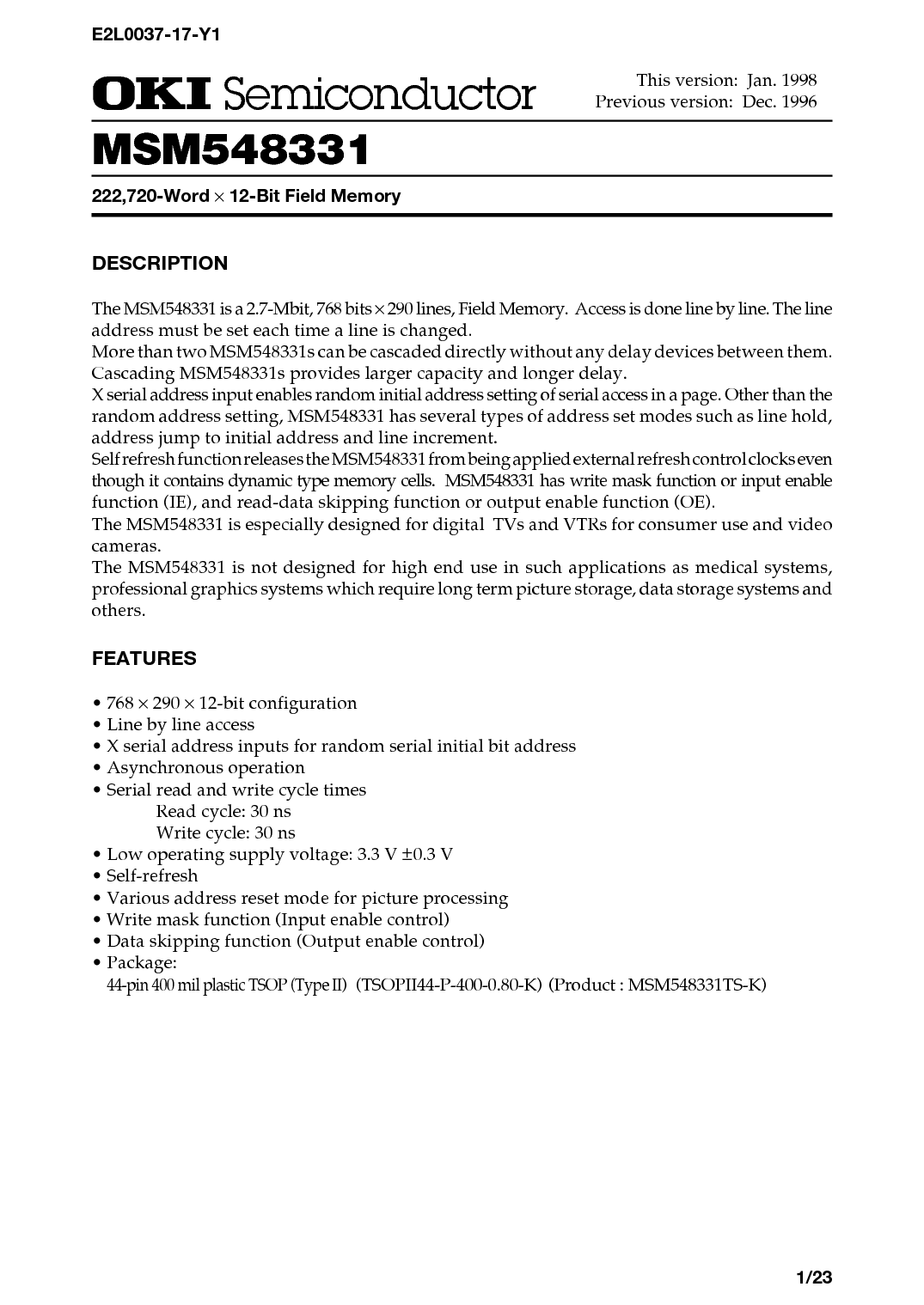 这 msm548331 是 一个 2.7-mbit, 768 比特