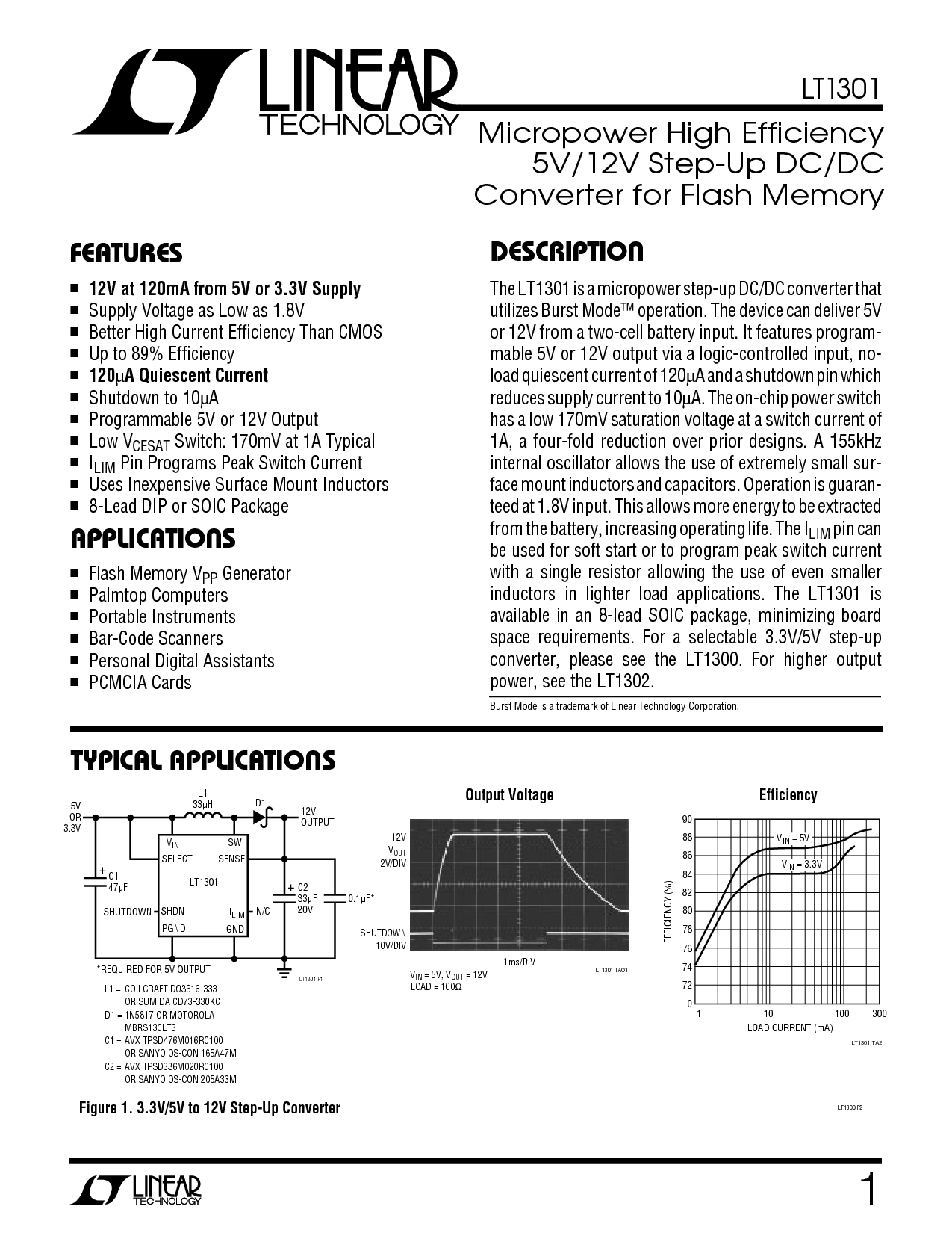 Micropower High Efficiency 5V/12V Step-Up DC/DC Converter for Flash Memory