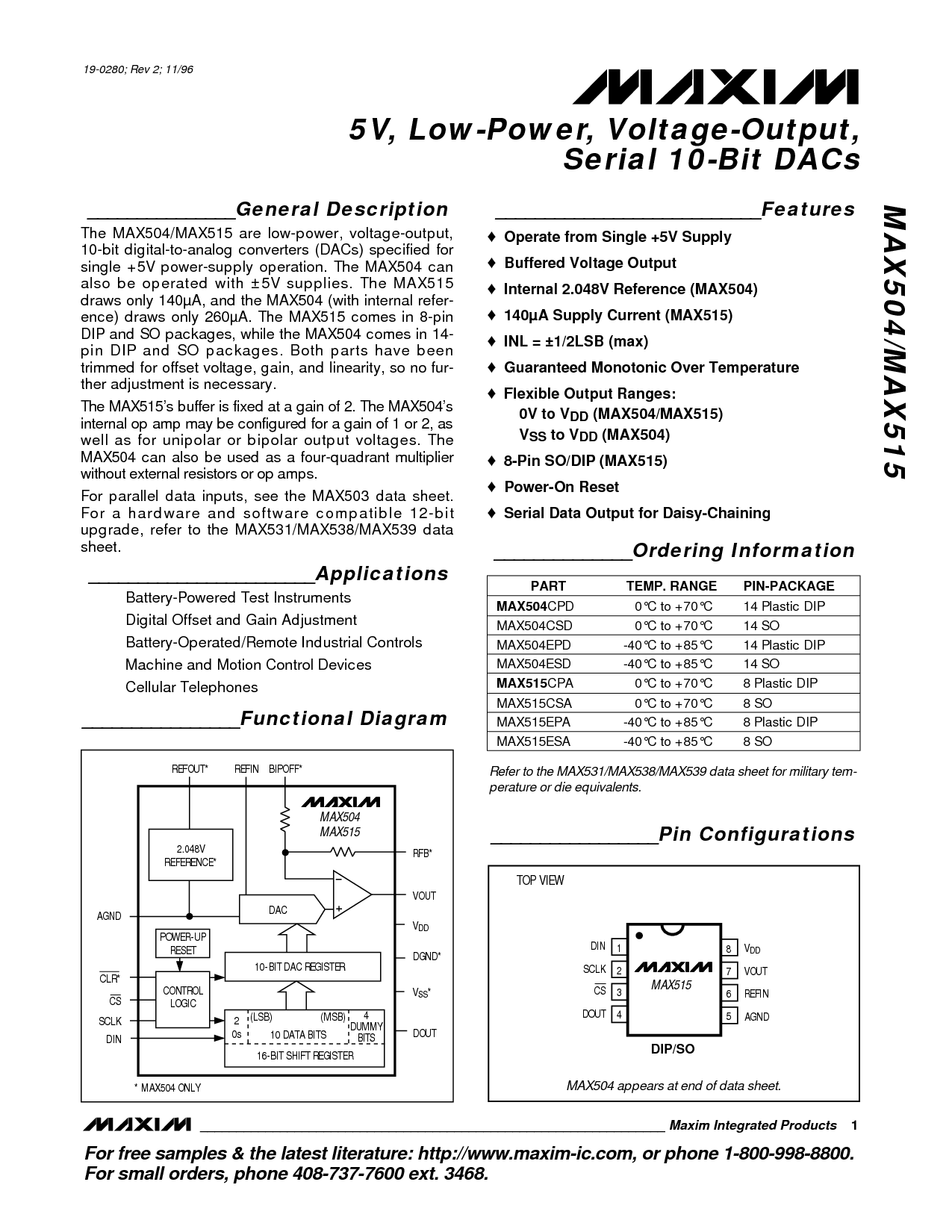 用于 免费 样品 &放大器; 这 最新 文学: http://www.马克西姆-集成电路.com, 或 电话 1-800-998-8800.