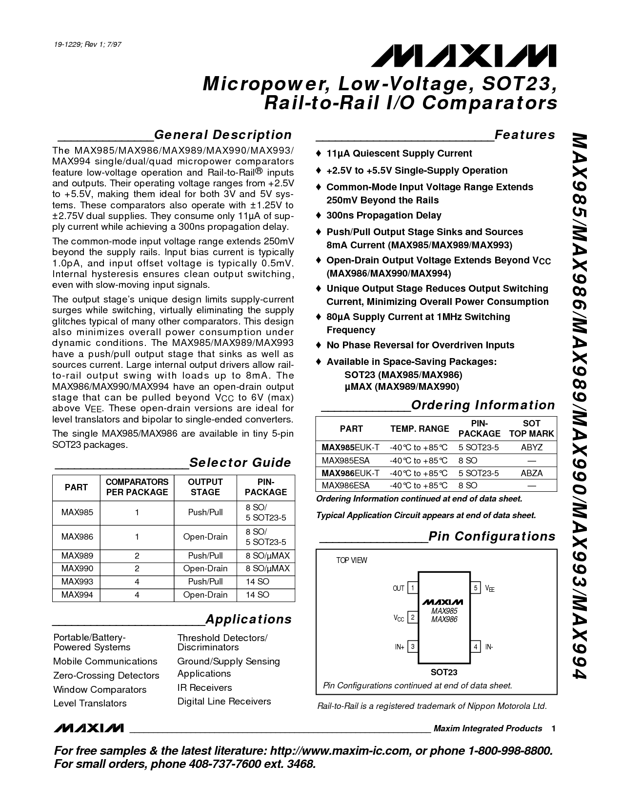 这 单独 max985/max986 是 可用 入点 微小的 5-管脚