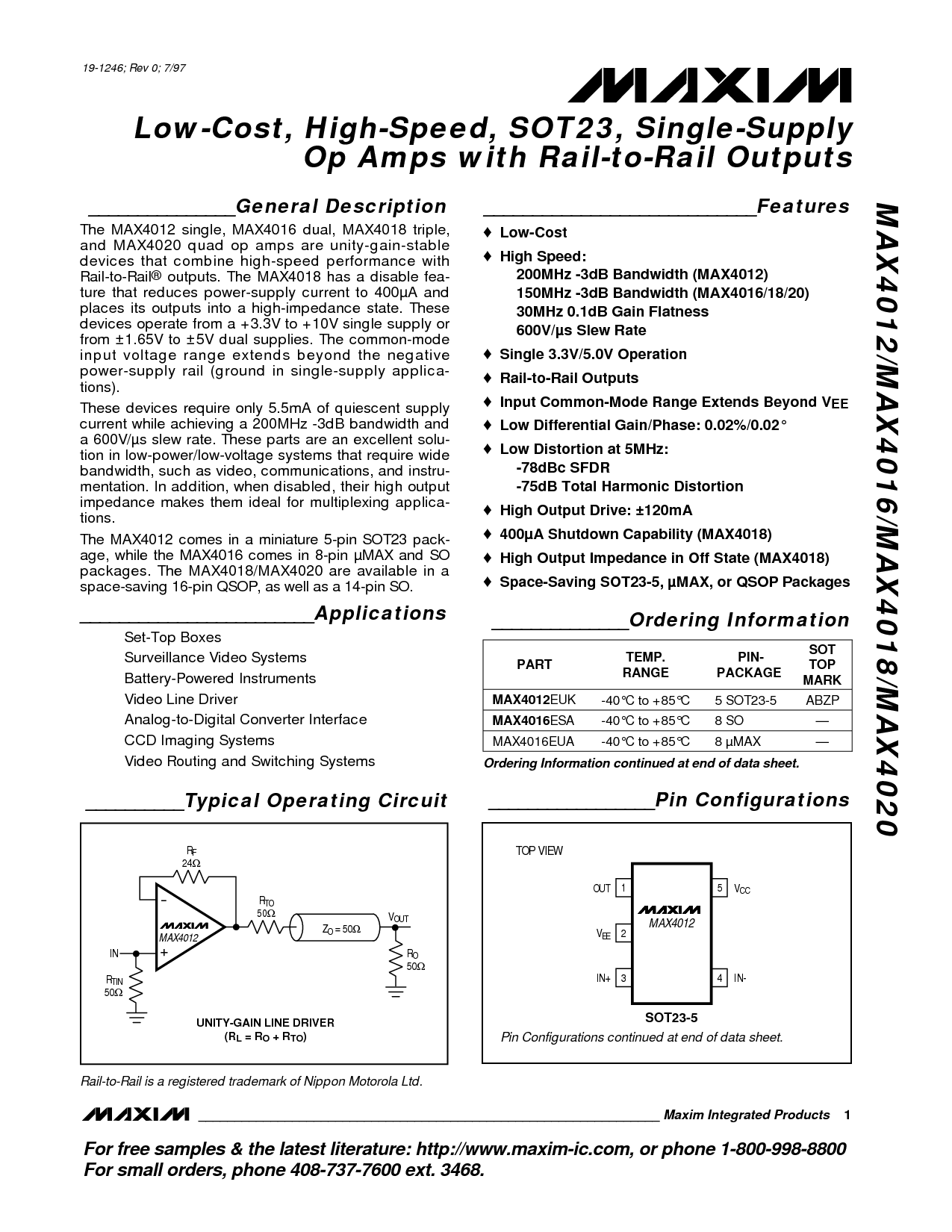 用于 免费 样品 &放大器; 这 最新 文学: http://www.马克西姆-集成电路.com, 或 电话 1-800-998-8800