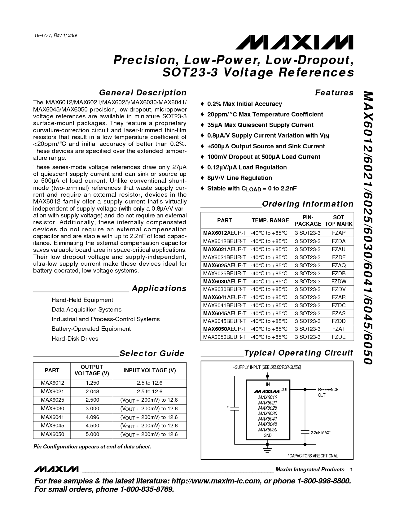 MAX6012 家庭 报价 一个 供应 电流 那’s 几乎