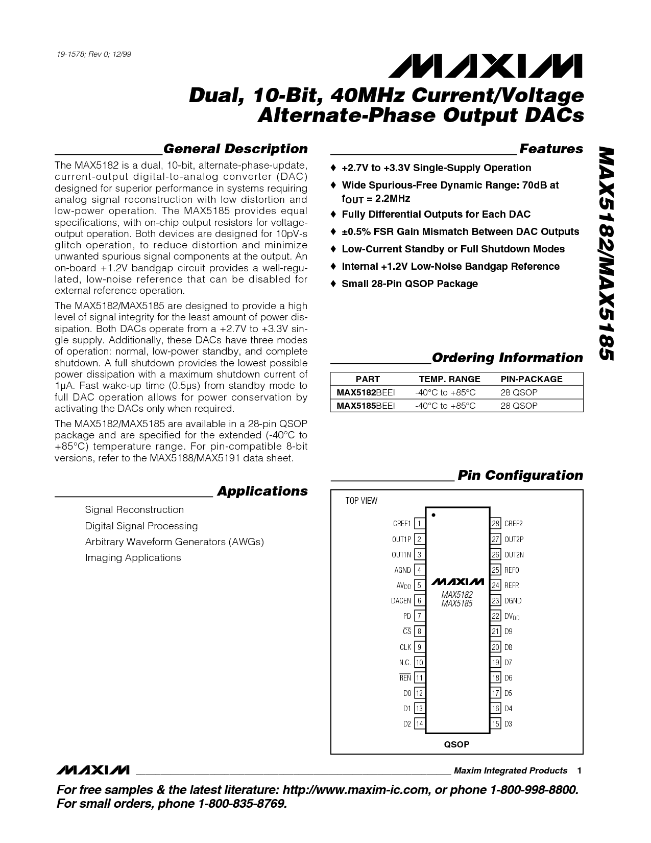 这 max5182/max5185 是 可用 入点 一个 28-管脚 qsop