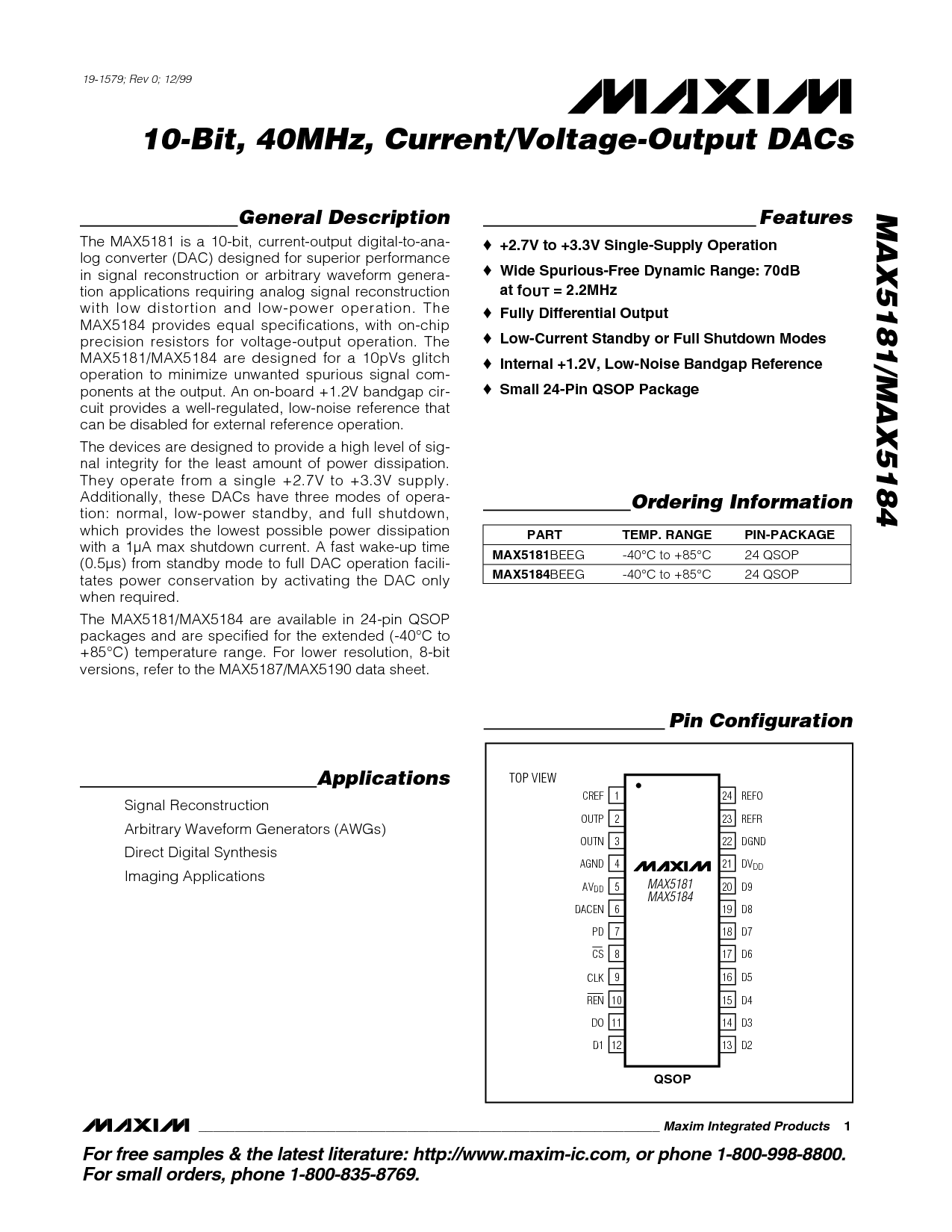 这 max5181/max5184 是 可用 入点 24-管脚 qsop
