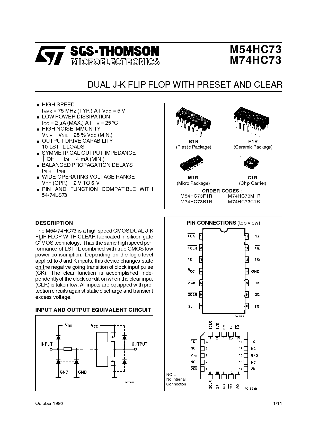 这 m54/74hc73 是 一个 高 速度 CMOS 双 j-k