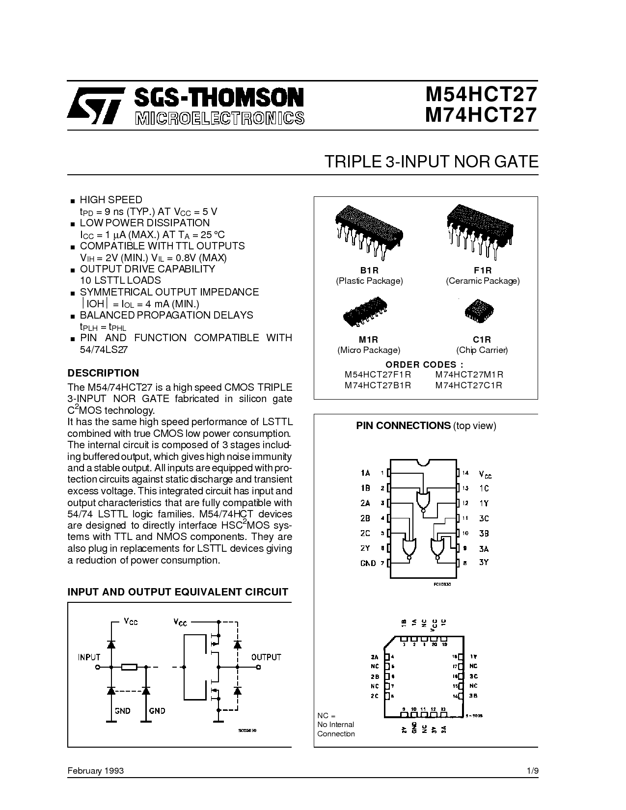 M54HCT27F1R M74HCT27M1R