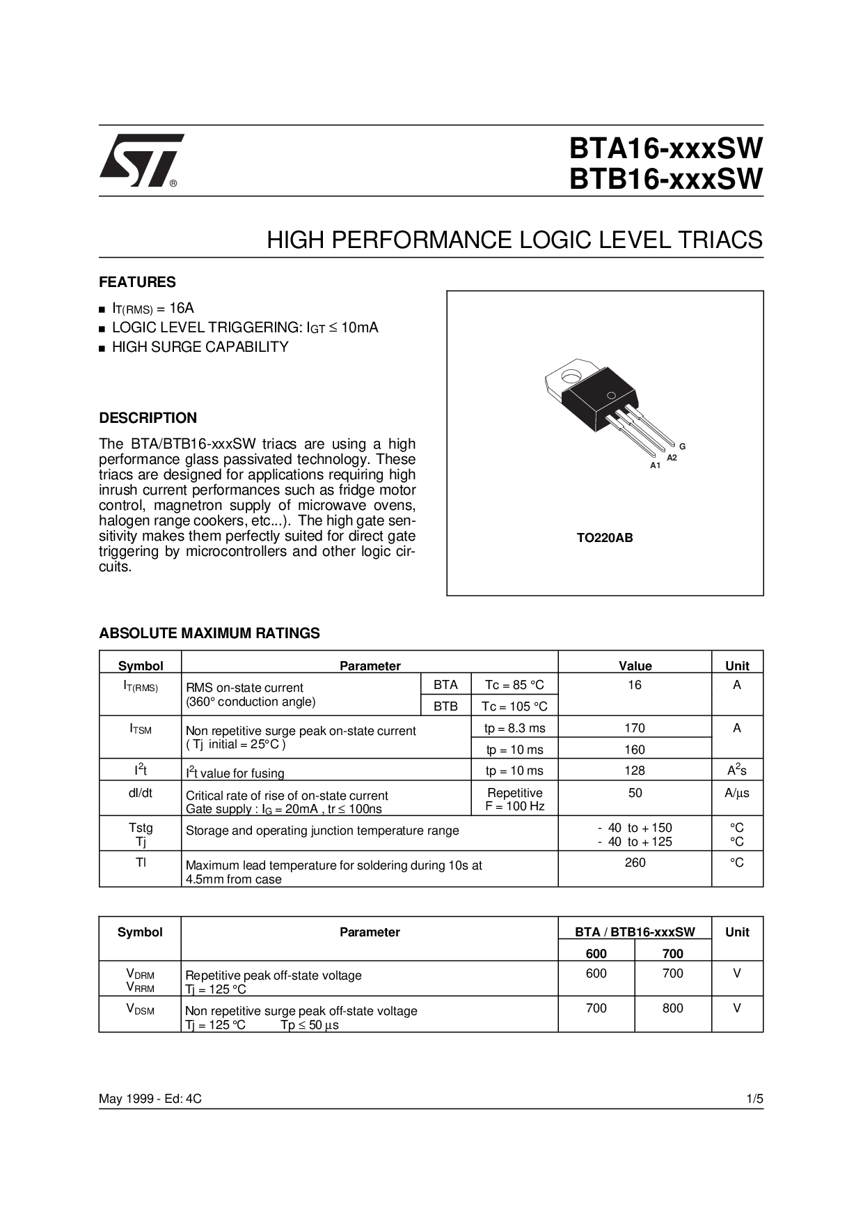 这 bta/btb16-xxxsw triacs 是 使用 一个 高