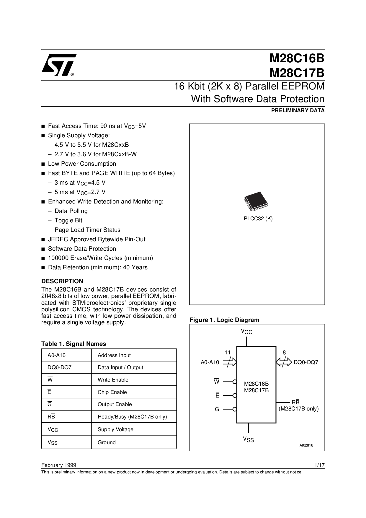 浏览型号M28C17B的Datasheet PDF文件第2页