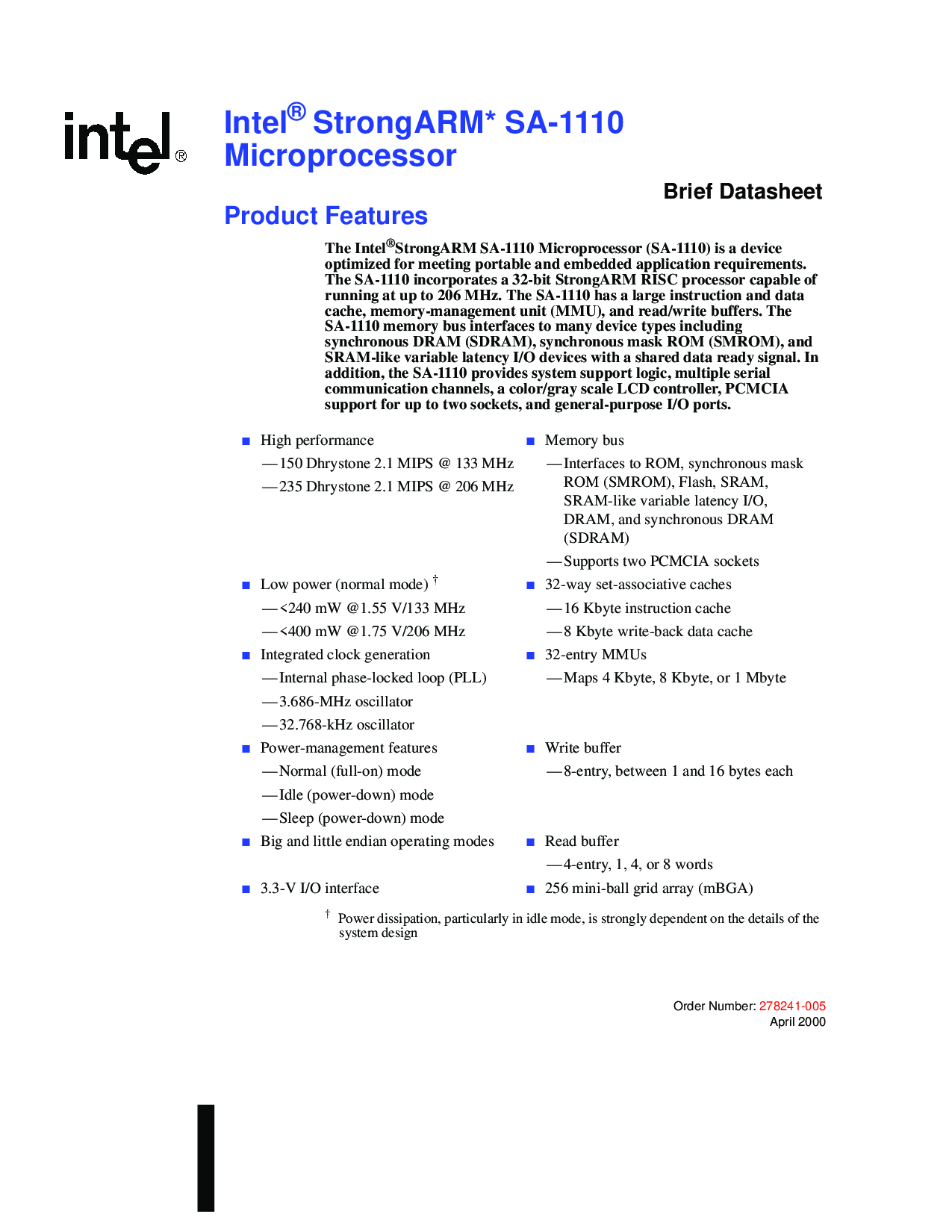 正在运行 在 向上 至 206 mhz. 这 sa-1110 有 一个 大型 说明书 和 数据