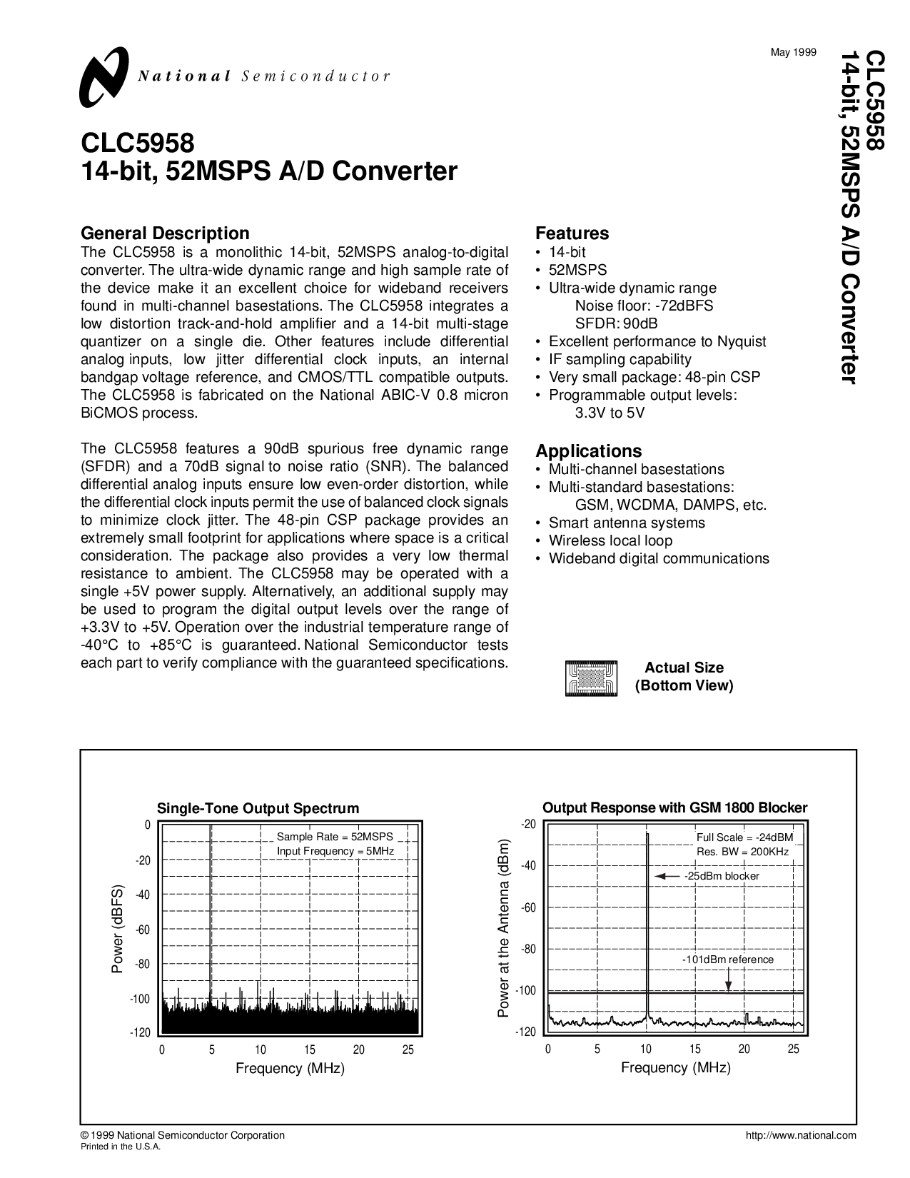 这 clc5958 是 一个 单片 14-有点, 52msps 模数转换