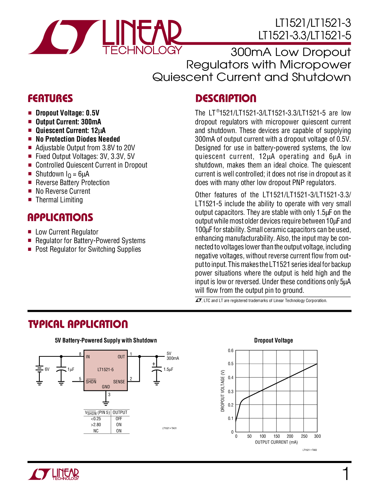 300mA Low Dropout Regulators with Micropower Quiescent Current and Shutdown