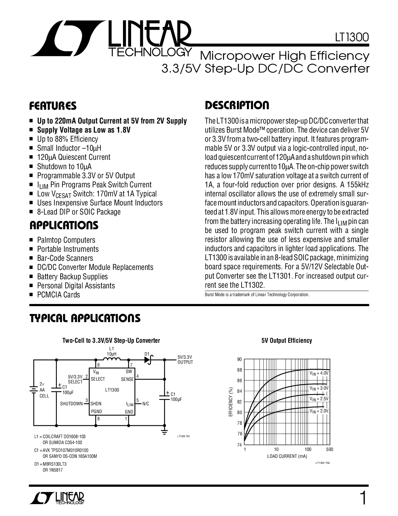 Micropower High Efficiency 3.3/5V Step-Up DC/DC Converter