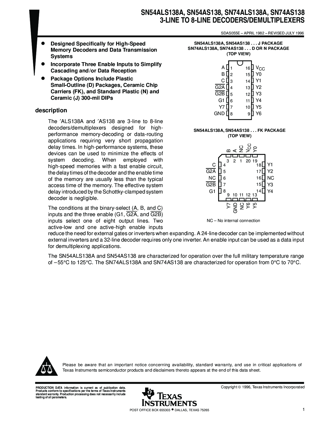sn54als138a, sn54as138, sn74als138a, sn74as138