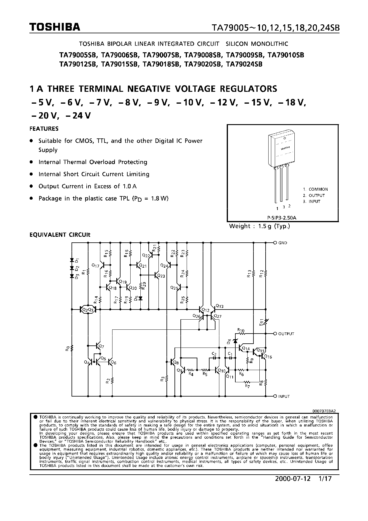 1A THREE TERMINAL NEGATIVE VOLTAGE REGULATORS