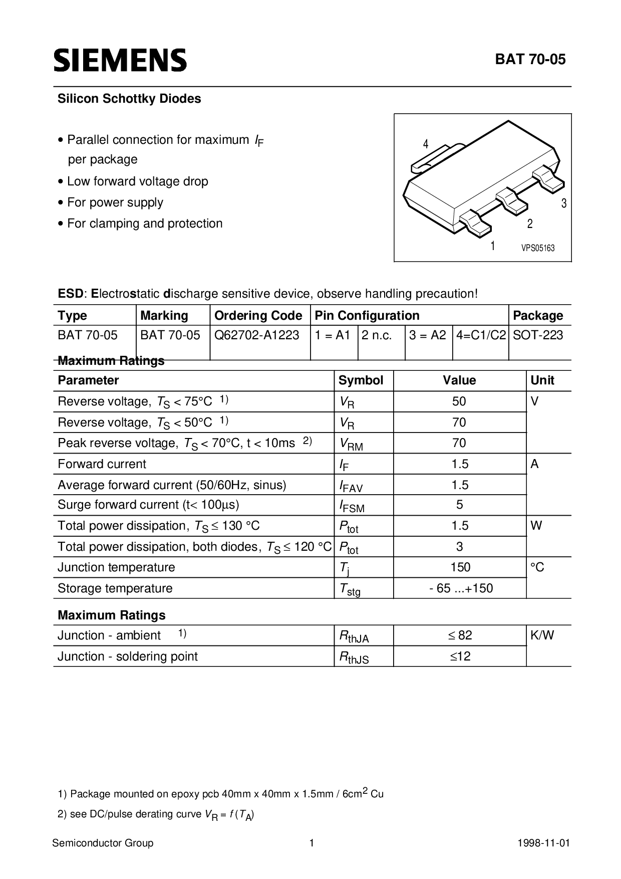 蝙蝠 70-05 蝙蝠 70-05 q62702-a1223 1 = a1 2 n.c. sot-2233 = a2 4=c1/c2