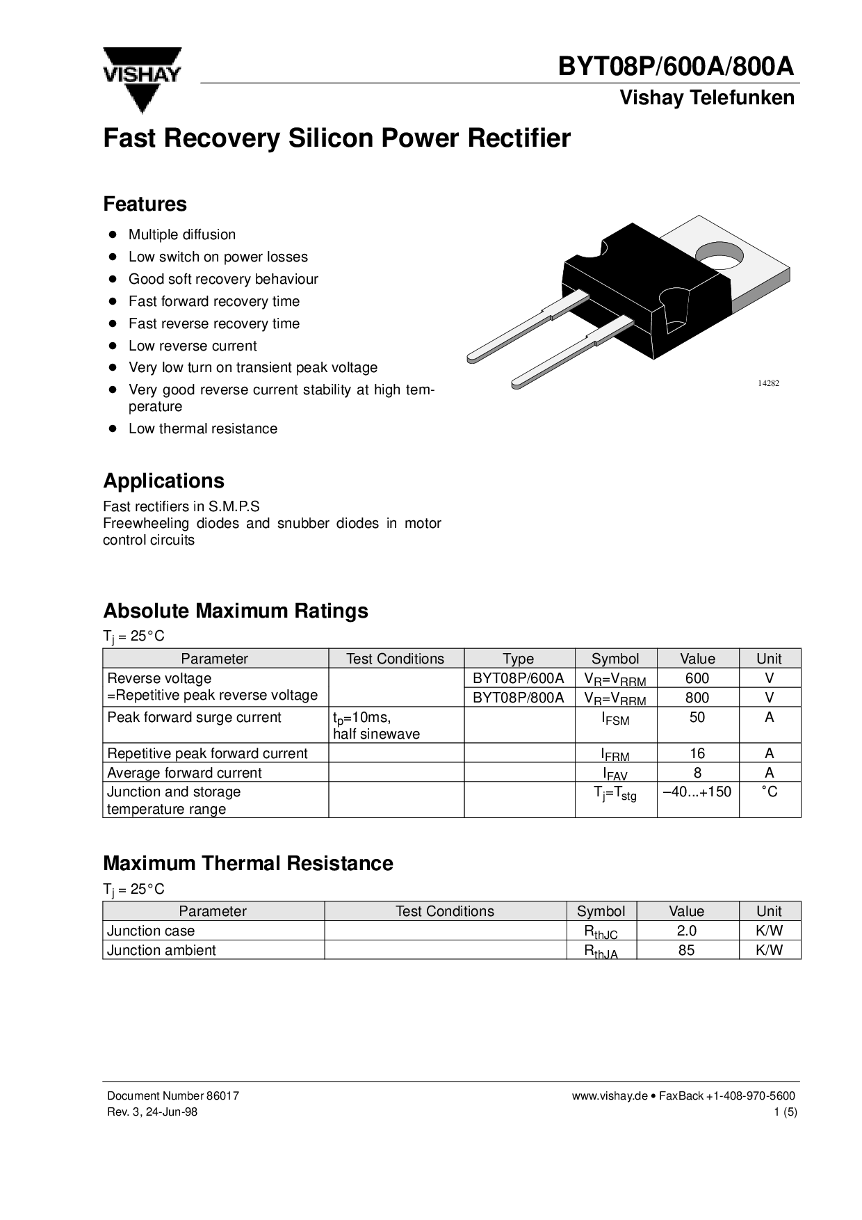 反向 电压 byt08p/600a v