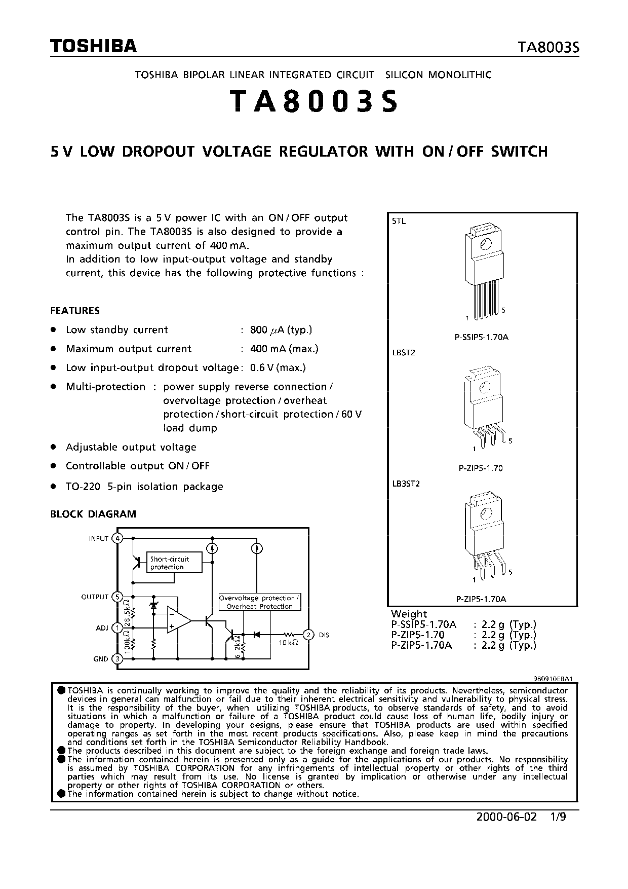 5V LOW DROPOUT VOLTAGE REGULATOR WITH ON / OFF SWITCH