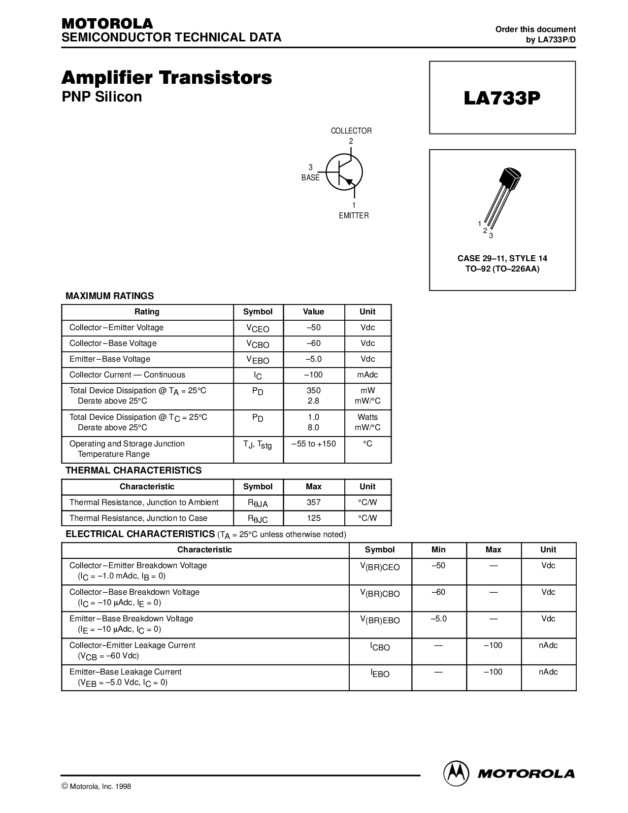 摩托罗拉 small–signal 晶体管, fets 和 二极管 设备 数据