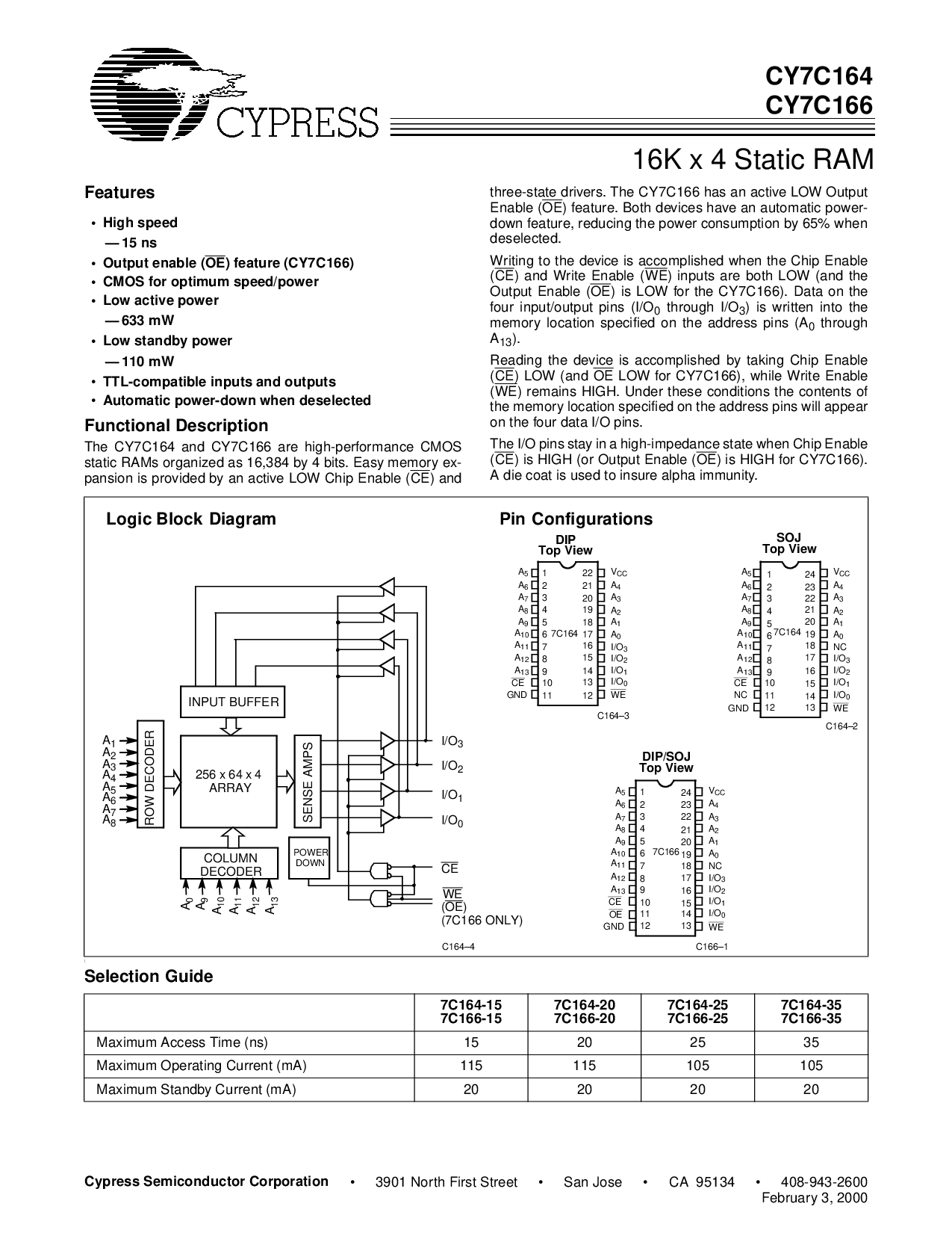 ) 功能 (cy7c166)