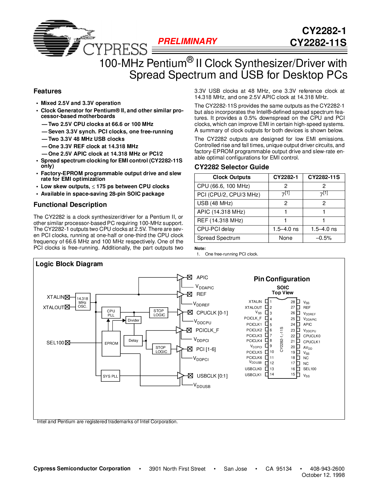 这 cy2282 是 一个 时钟 合成器/驾驶员 用于 一个 pentium 二, 或