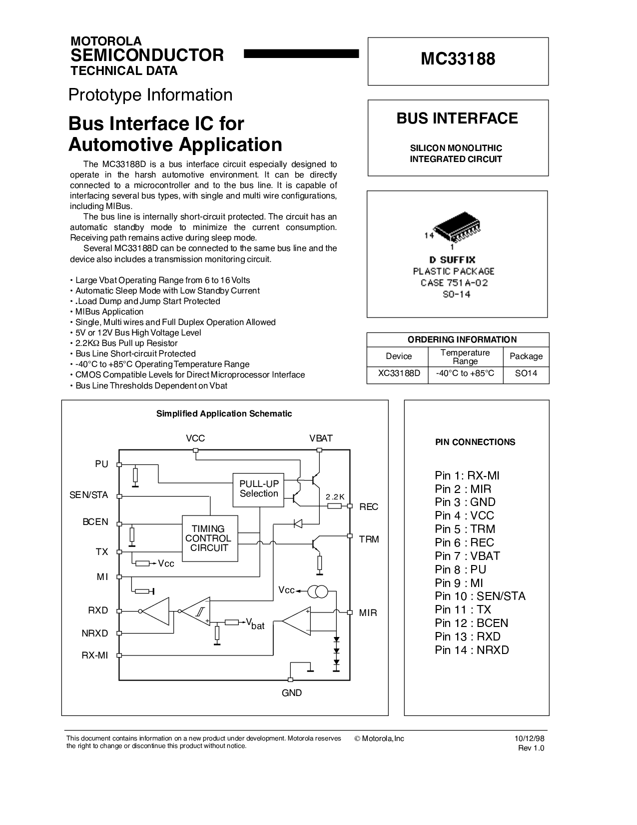 这 mc33188d 是 一个 总线 接口 电路 尤其是 设计 至