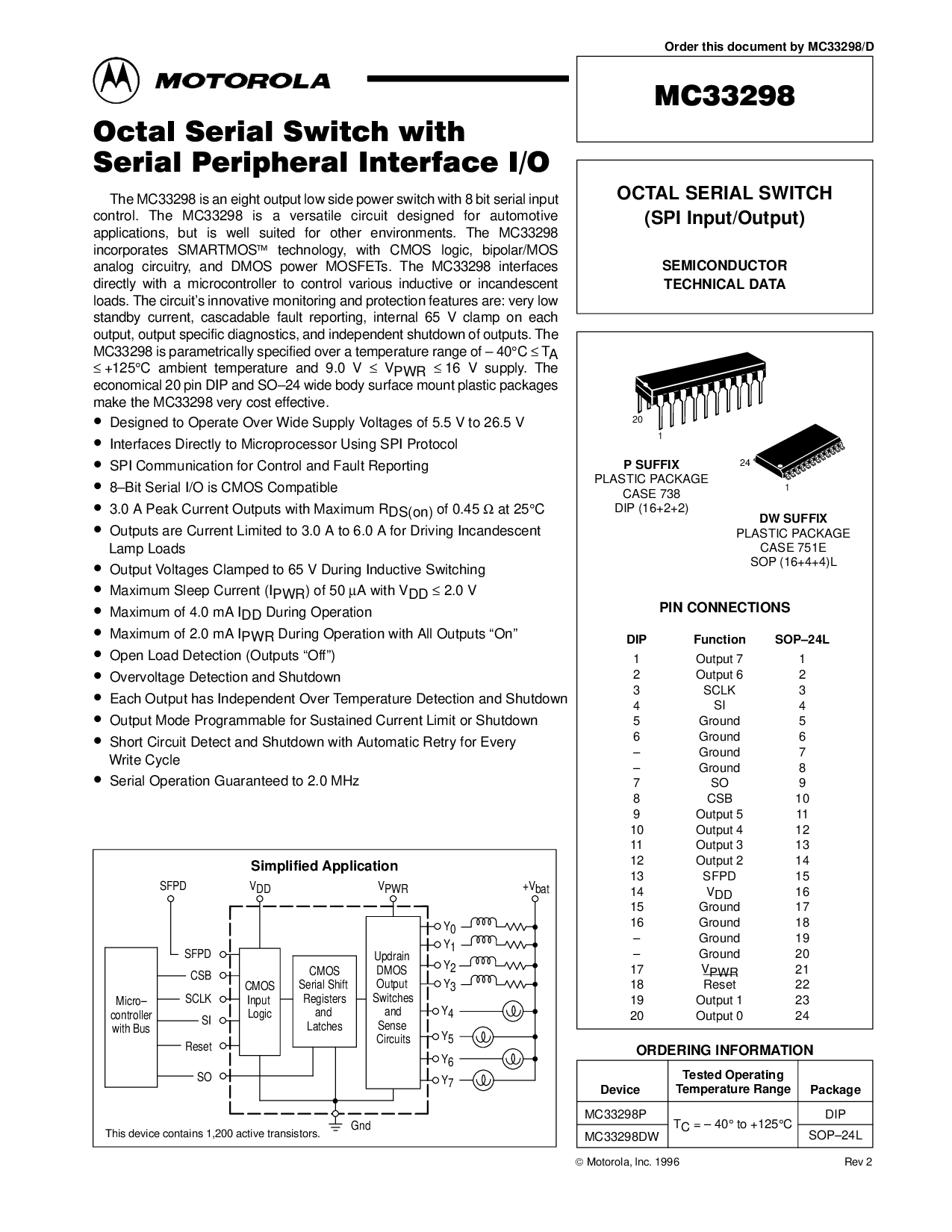 控制. 这 mc33298 是 一个 多才多艺 电路 设计 用于 汽车