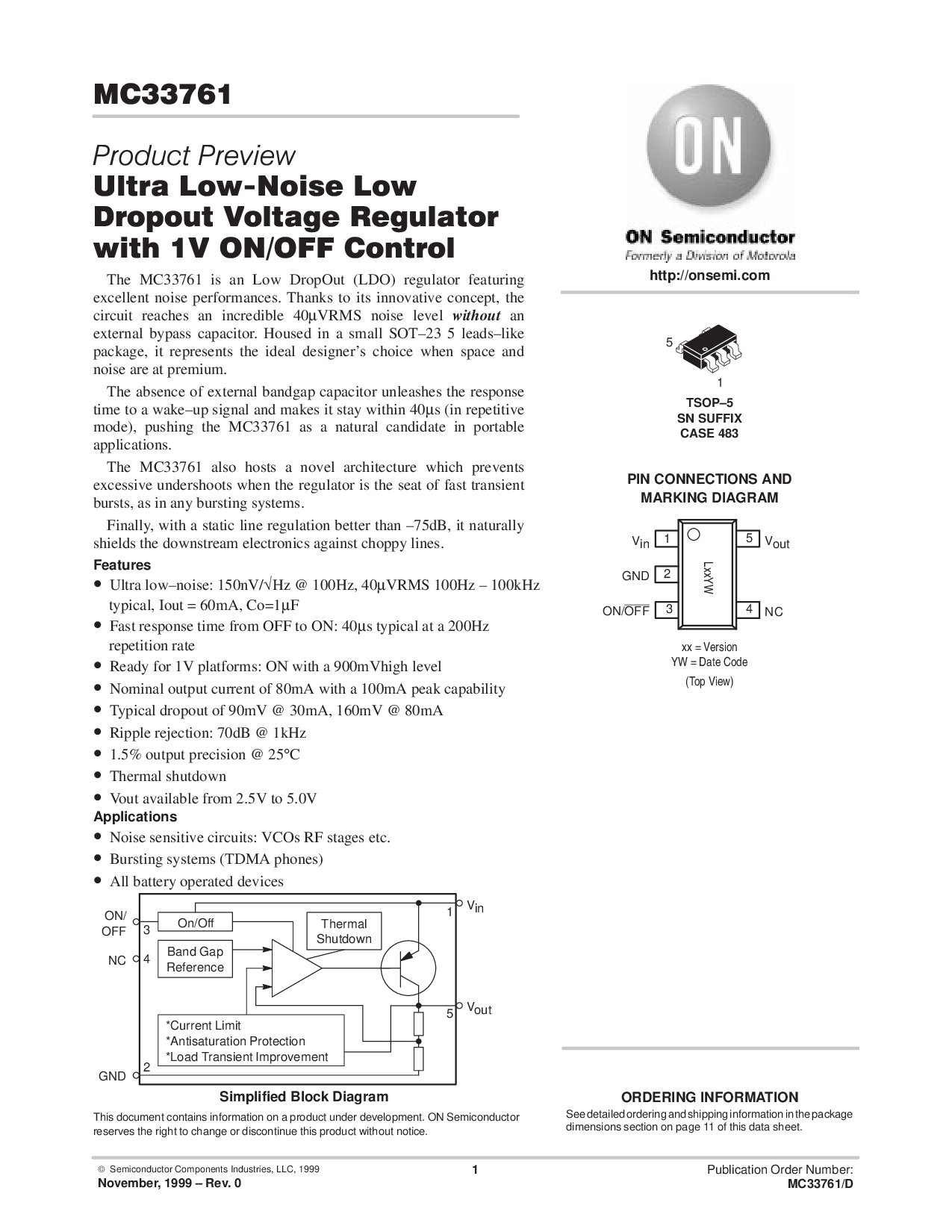 这 mc33761 是 一个 低 辍学 (ldo) 调节器 特色