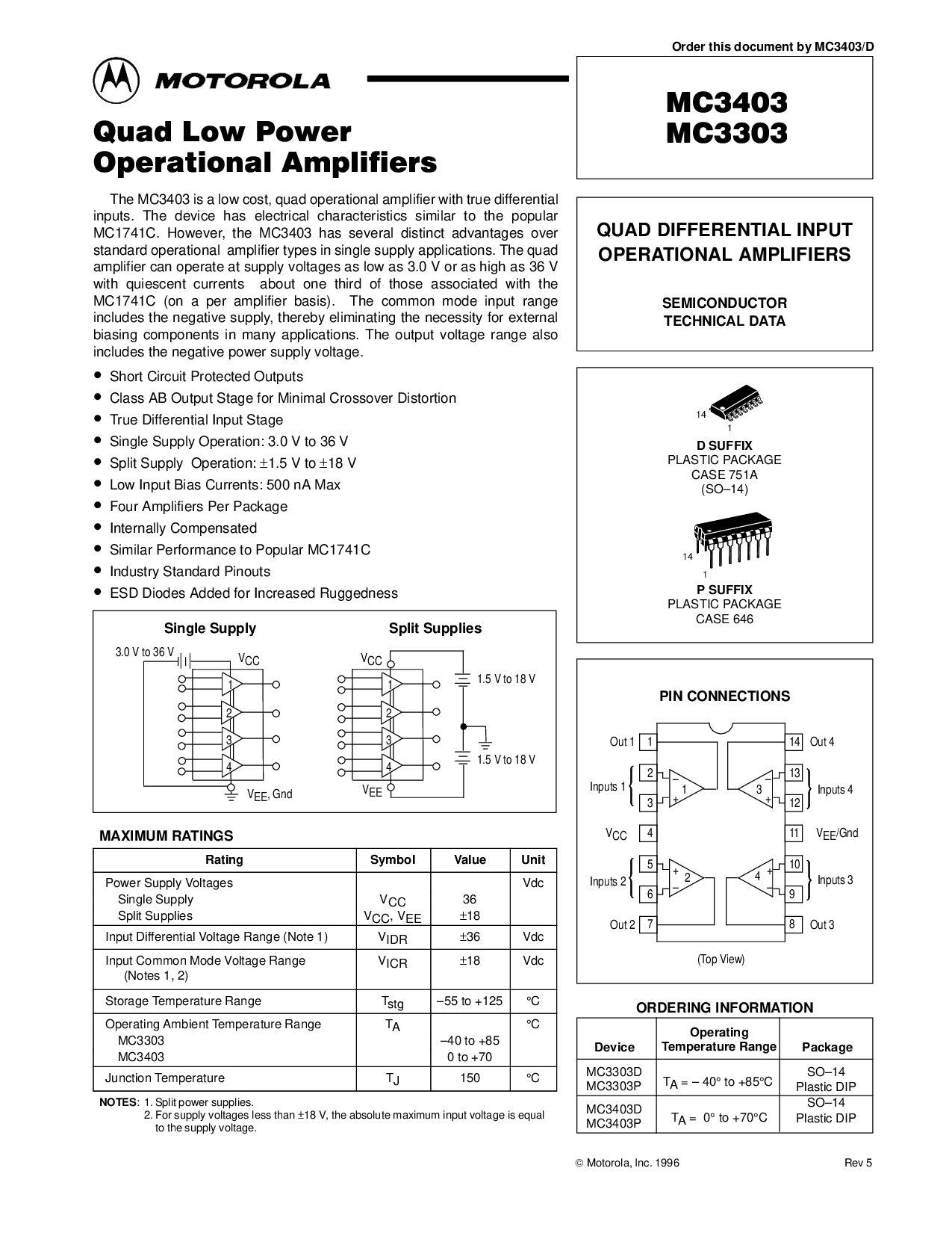 这 mc3403 是 一个 低 成本, 四边形 运营 放大器 与 真 差速器