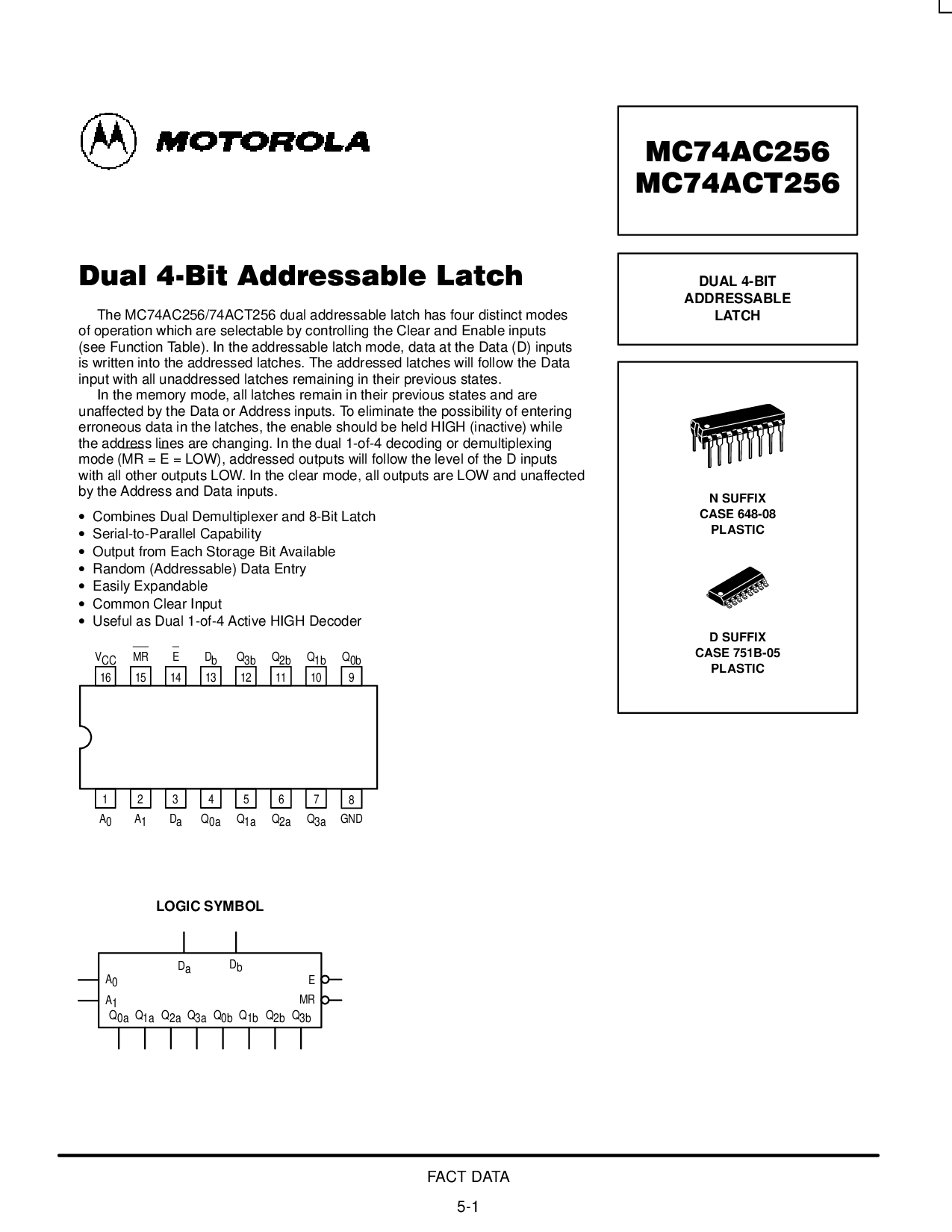 这 mc74ac256/74act256 双 可寻址 门闩 有 四 相异 模式