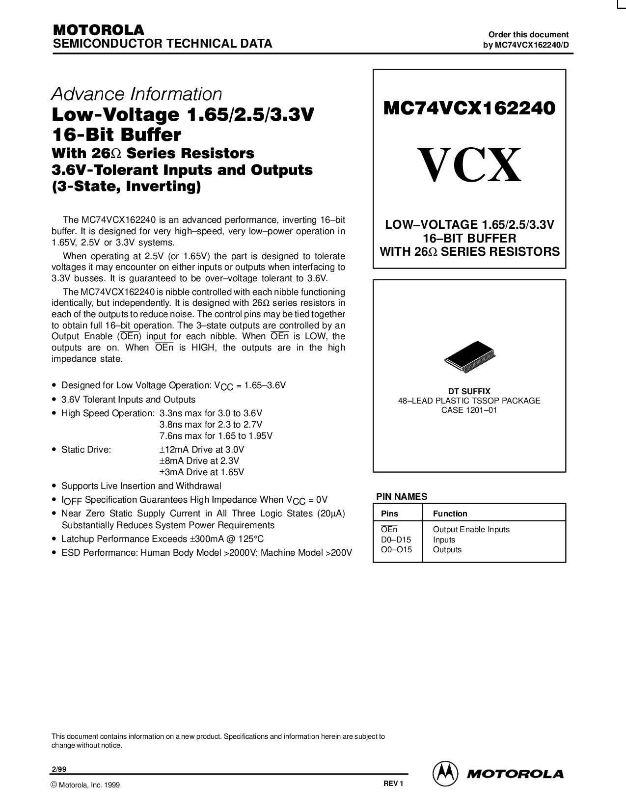由 mc74vcx162240/d