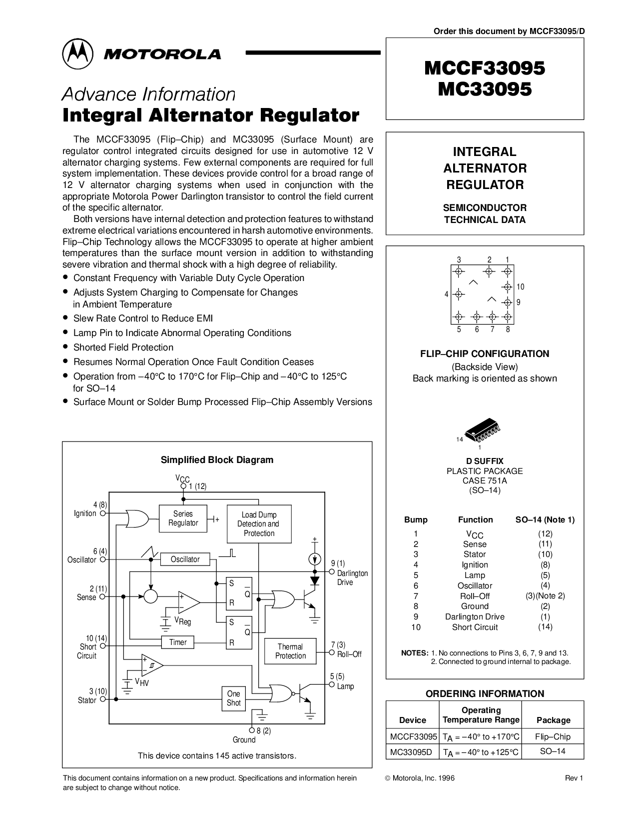 这 mccf33095 (flip–chip) 和 mc33095 (表面 安装) 是