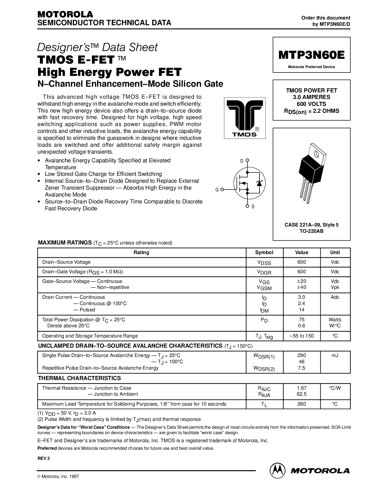 TMOS POWER FET 3.0 AMPERES 600 VOLTS