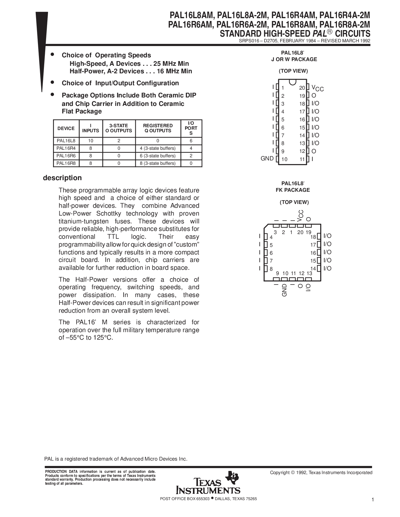 pal16l8am, pal16l8a-2m, pal16r4am, pal16r4a-2m
