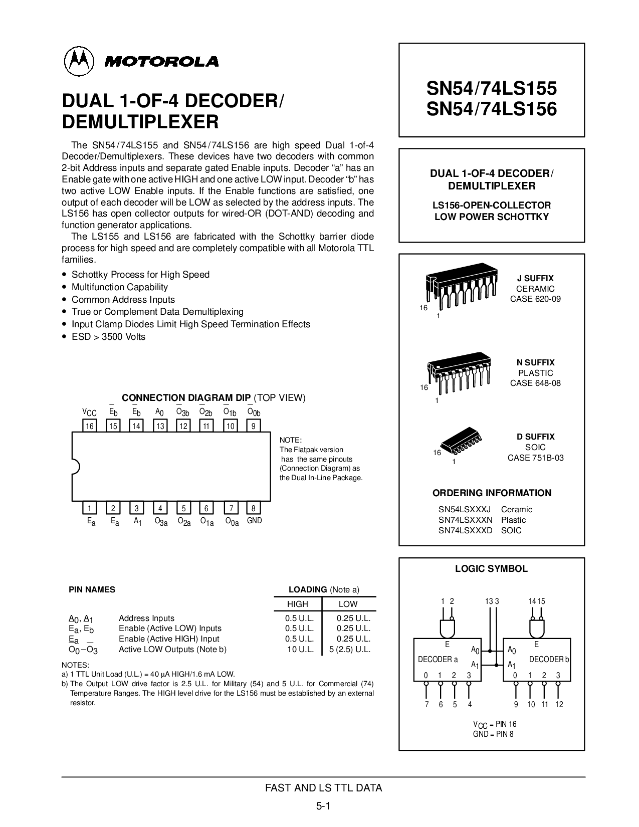这 sn54/74ls155 和 sn54/74ls156 是 高 速度 双 1-的-4