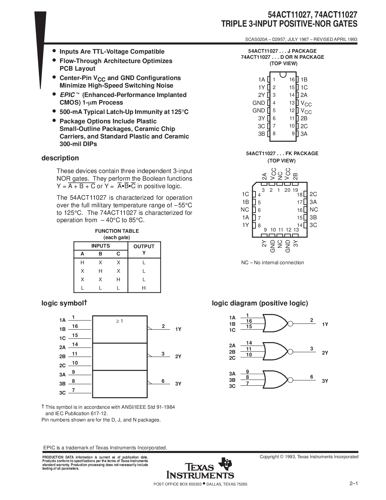 scas020a – d2957, july 1987 – 修订 april 1993