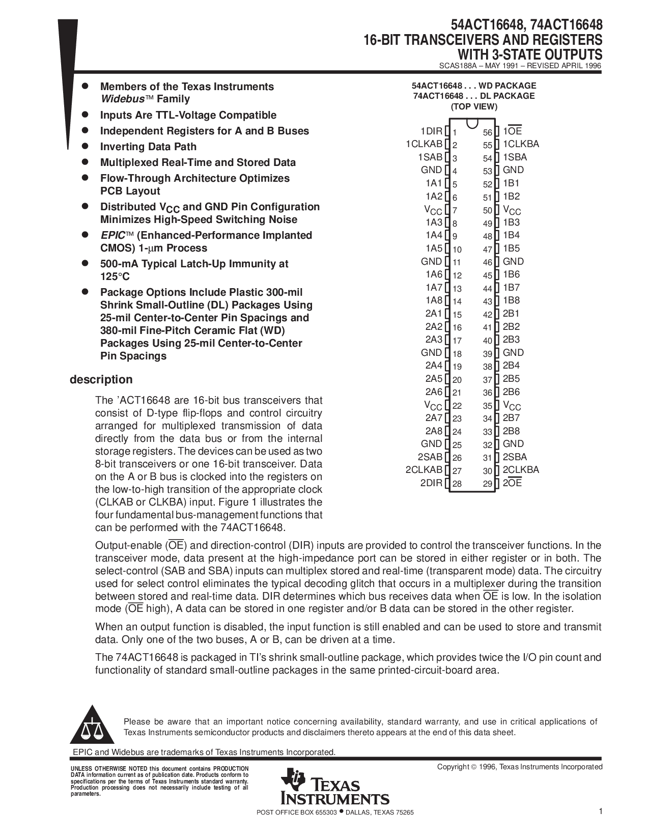 这 74act16648 是 已打包 入点 ti’s 收缩 小轮廓 包装, 哪个 提供 两次 这 我/o 管脚 计数 和