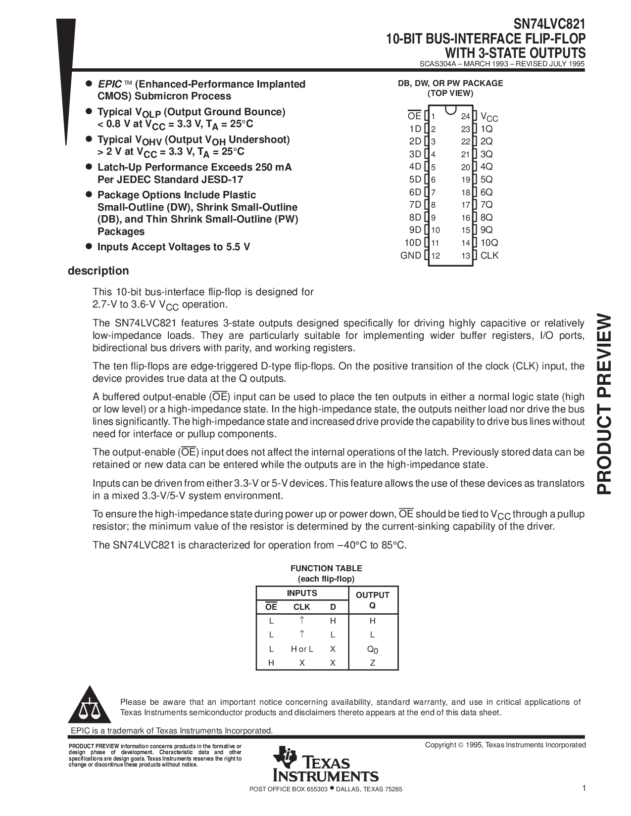 这 sn74lvc821 特点 3-州 产出 设计 具体而言 用于 驾驶 高度 电容式 或 相对而言
